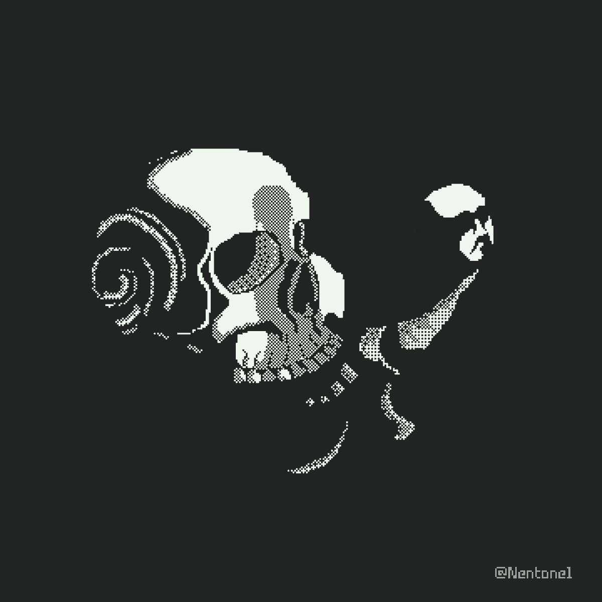 The Outsider's Bestiary Entry #1: The She-Snail. Snail-like abomination of unknown origins. A hag burdened with a great human skull. Always flees from human presence. #pixel_dailies #pixelart #ドット絵 #aseprite @1bitbadbitches #1bit #1bitmonitorglow #sir_nentone #horrorart