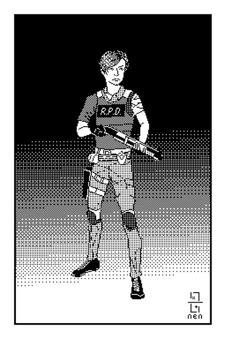 "Leon Scott Kennedy" -- #manga page in #pixelart form. #ドット絵 #aseprite #sir_nentone #1bit @1bitbadbitches #residentevil2remake #mangaart #mangadrawing