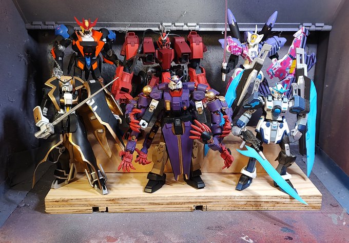 Operation Myth! A new Pic of my fist hololive Gunpla project. I finished it about a year ago. Phoenix Wing, Saltrock, Heavy Shark, Tokotron and Dadsythe. #artsofashes #ameliaRT #callillust #inART #gawrt #gunpla #gundam #holoMyth