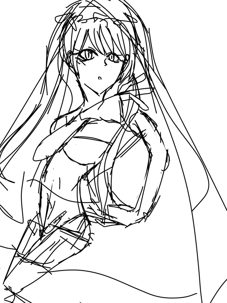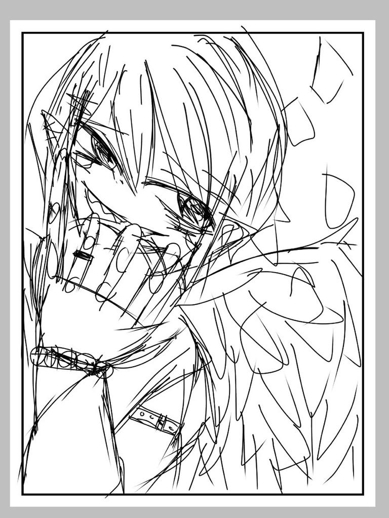 #このタグを見た人はラフ画とその完成絵を見せる ラフ書くのは厚塗りのときだけで普段は書かないので過去絵になります