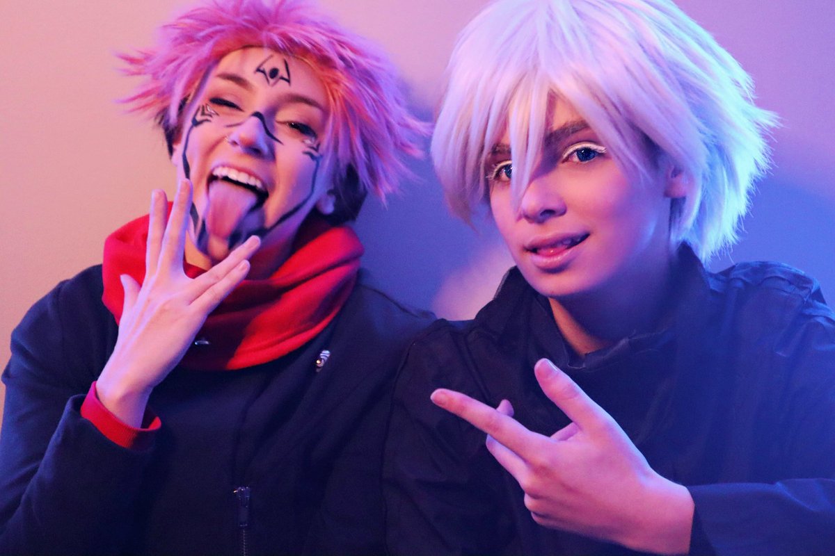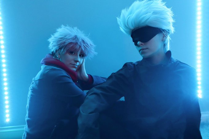 the strongest, the king, and the vessel. 🤞🏻👑❤ I had so much fun doing my first ever Crossplay alongside my wonderful friend @idolgutz. I'm so honored Gia was the Itadori/Sukuna to my Gojo ♡ #JujutsuKaisen #呪術廻戦 #Itadoriyuuji #GojoSatoru #Sukuna #Cosplay