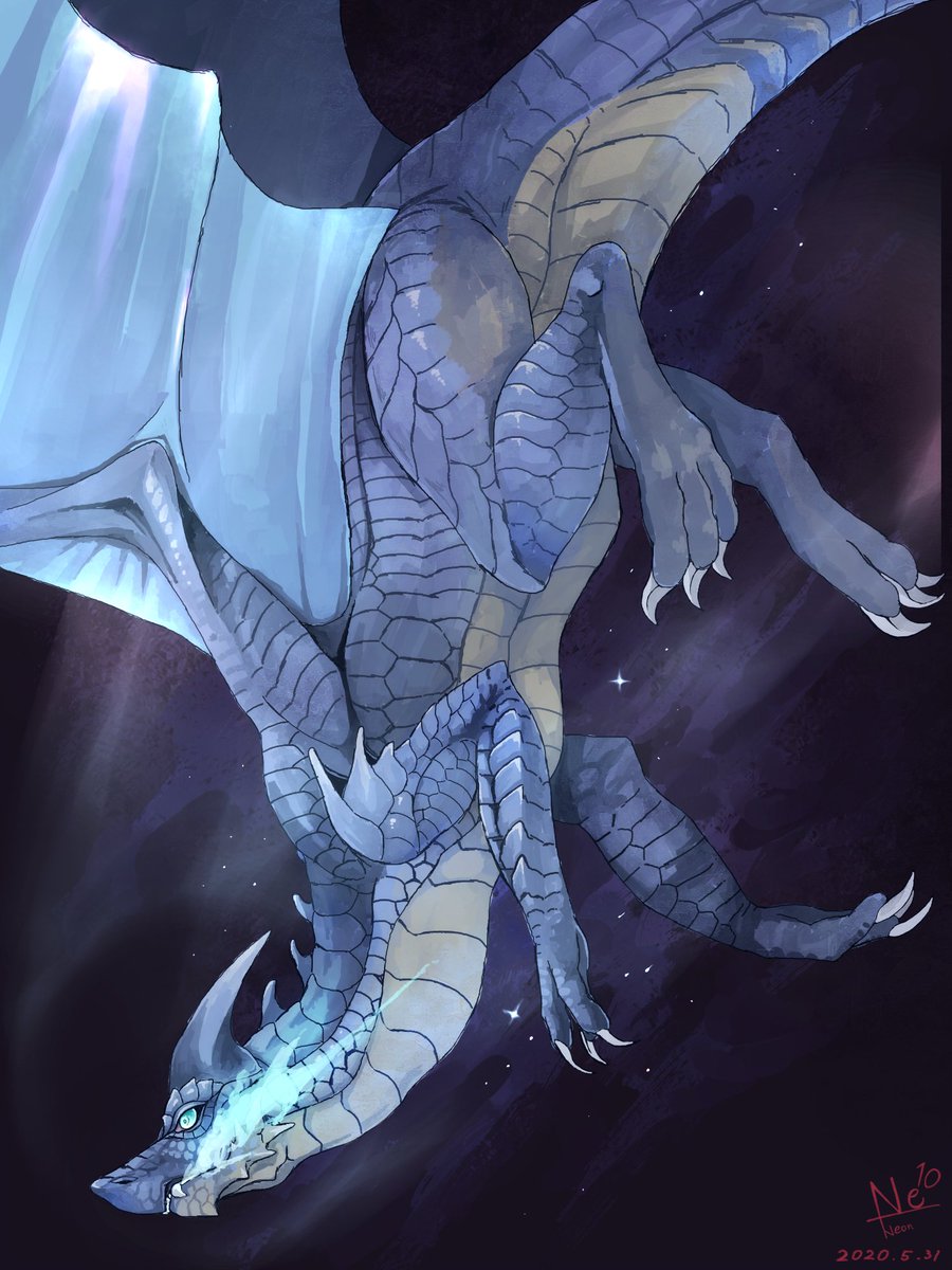 先日Skebで描いたドラゴン、爪が透明なデザインだったので、透け感にこだわって描きました。Skebの作品ページだと小さくて見えないので拡大。 twitter.com/NeonNightred/s…