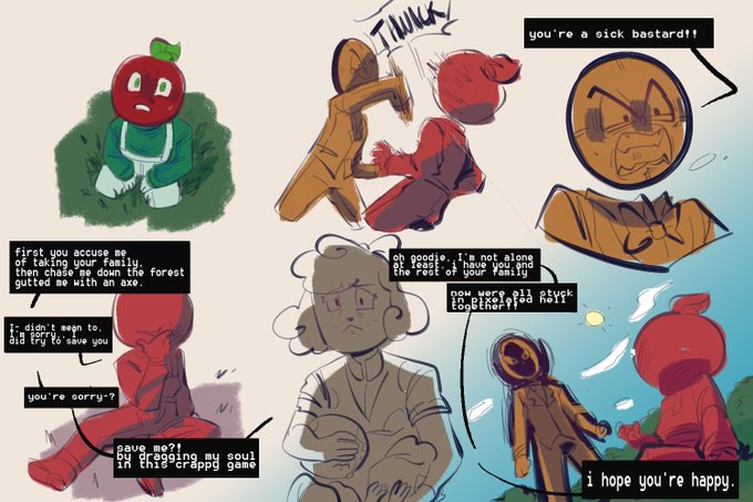 //light blood , broken glass . . i'd like to think that glitching makes them slowly forget who they are- #AndysAppleFarm #andysapplefarmfanart #claustheclock #andytheapple