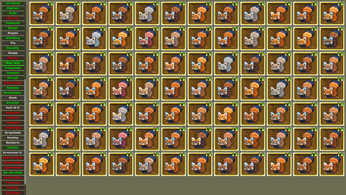 8 37 For our monster catching game we're designing a little system with semi-randomized color generation for each mon. This way when you catch a mon, there's a good chance it'll look just a bit different from others of its species. #pixelart 23/07/28 04:40