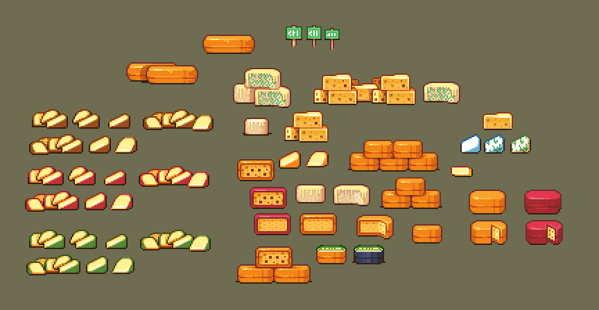 122 1022 Various pixelart cheeses. 22/12/18 04:45