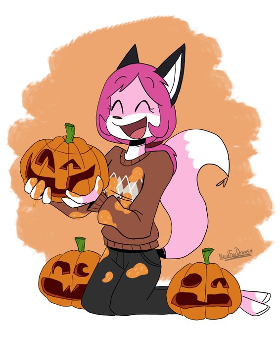 Carving some pumpkins 🎃 #ArtistOnTwitter #cartoon #digitalart #fall #pumpkin #originalcharacter #fox