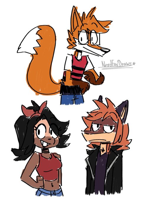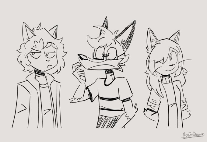 Getting back to draw on Medibang, enjoy this sketch of 3 silly nerds @Jack_13245 @slumberdoq #ArtistOnTwitter #cartoon #digitalart #originalcharacter #fox #cat #sketch