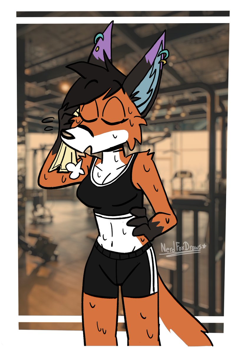 Eclipse taking a break after a workout at the gym. It's my first time to try something different on my drawings, you know like... this one for example, anyways enjoy it :v #cartoon #digitalart #anthro #furry #wolf #originalcharacter