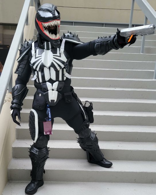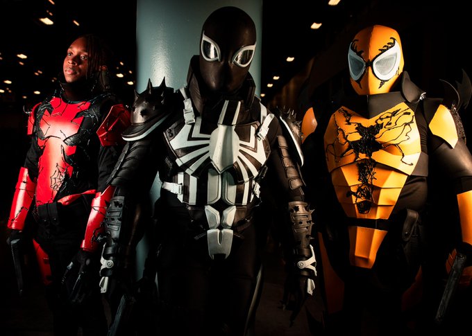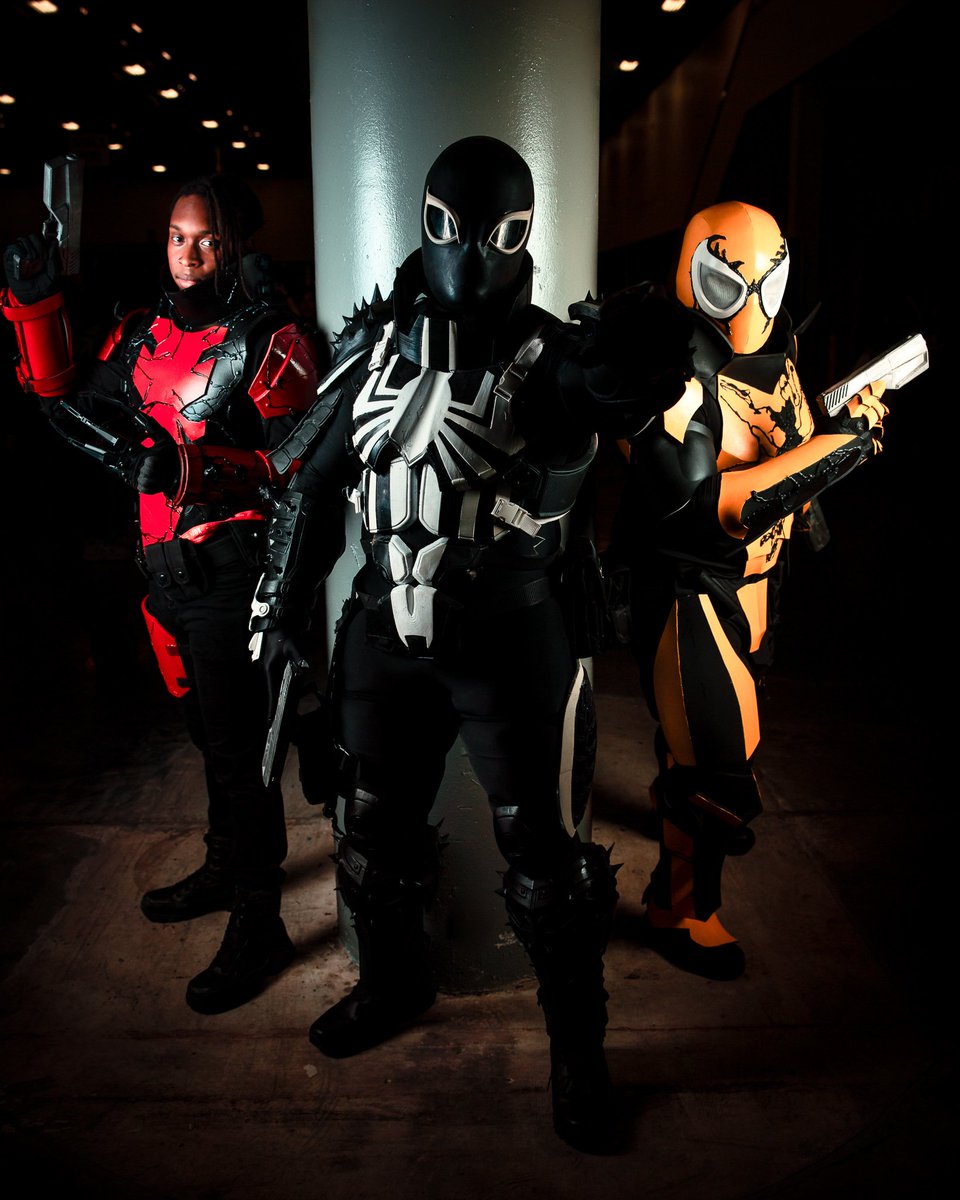 Hunters through and through From left to right: Agent Toxin (@GC_Christopher_ ), Mania (Gracefully Cosplay), Agent Venom (me), and Agent Phage (Dan the SpiderMan) Photo by Ghost Xposure #venom#marvel#cosplay