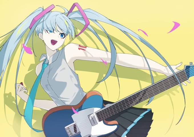 初音ミクさん描きました。 ギター持ってます。 #初音ミク #イラスト
