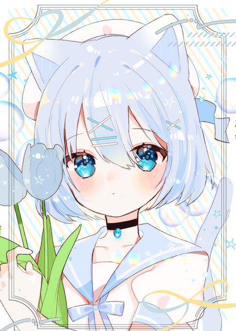 #イラスト .☆.。.:.+*:゚+。みずいろキャット.゚・*..☆.。.:*