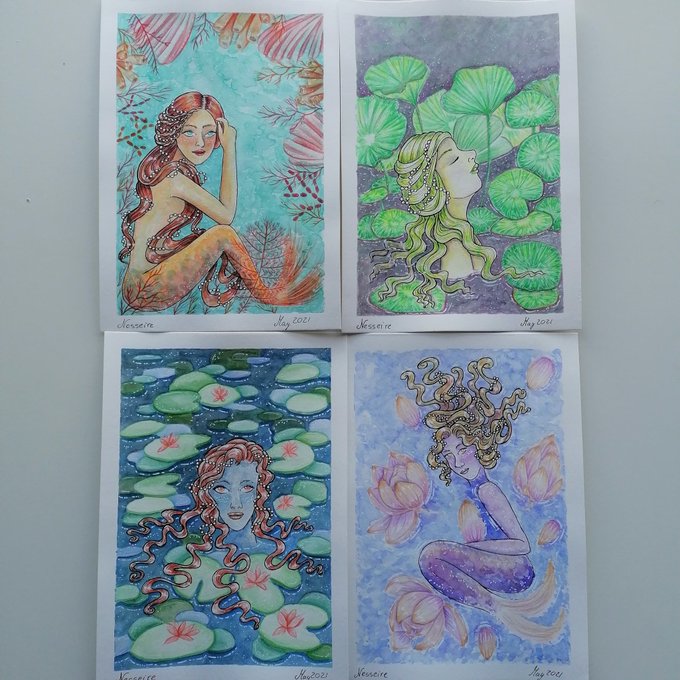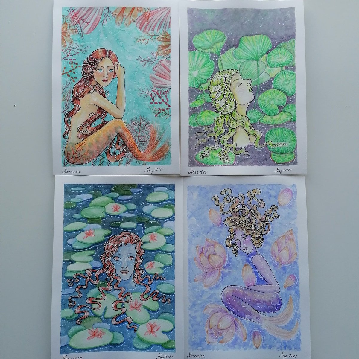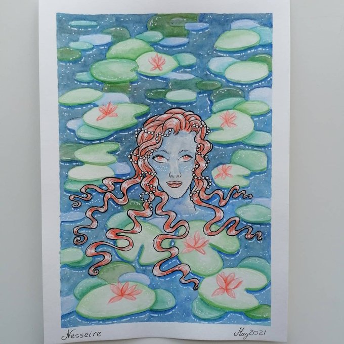 Final version of mermay Week1. I'm gonna call her Coral #mermay2021 #mermay #mermaid #lineartwork #lineartist #lineart #watercolorartist #watercolordrawing #watercolorflorals #watercolorportrait #watercolorleaves #portraitpainting #portraitart #traditionalartist