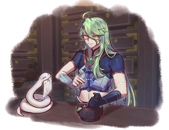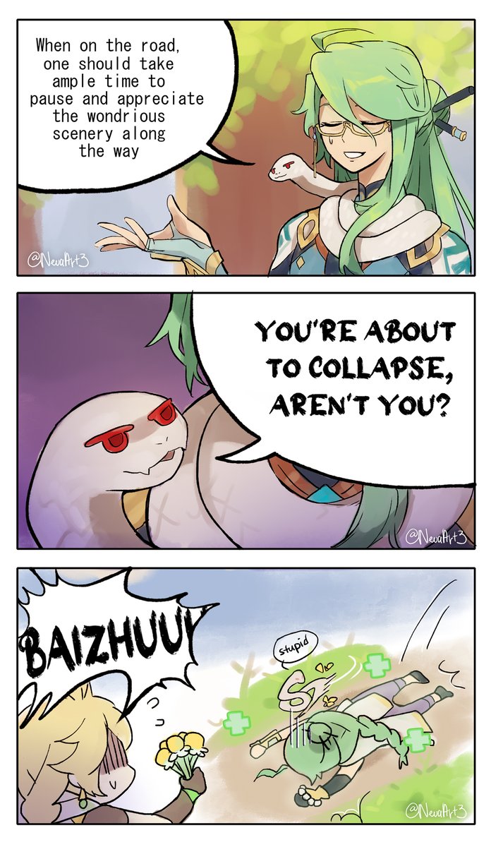 Baizhu has been shrunk by strange medicine! Changsheng tried her best to make Baizhu take the medicine tried more soft shading orz #GenshinImpact #Baizhu #genshinimpactfanart