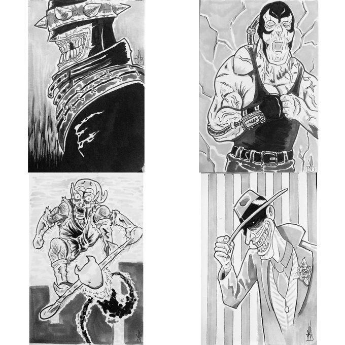 @sketchophia @NSalmelin Hola! I’m Juho, proffesional Visual Artis & Graphic Designer. For this #Inktober2019 i’m drawing Supervillain theme :) Here’s few of my baddies: Batman Who Laughs, Bane, Green Gobling and The Joker. More of my work can be find in IG: kuvataiteilijajuho