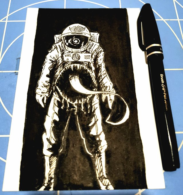 Fanmade inktober monster prompt Day 1 - Teeth Among Us fanart #inktober #inktober2020 #inktober2020day1 #amongusfanart #AmongUs #brushpen