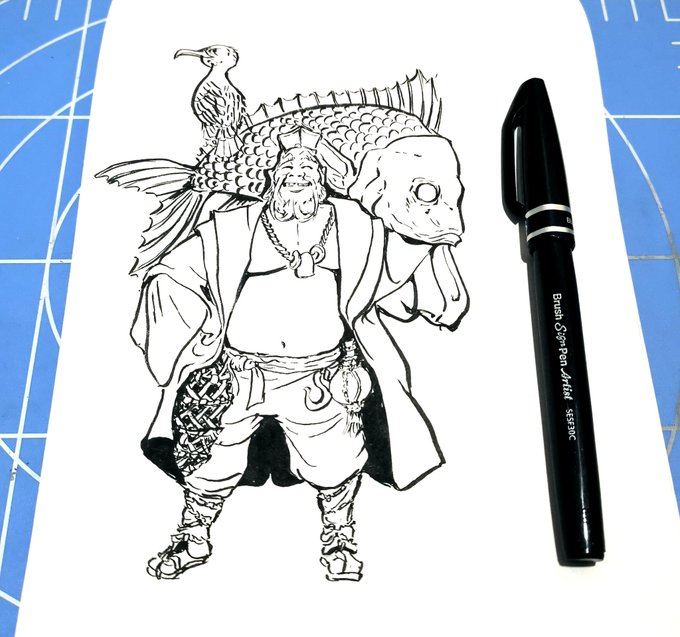 Fanmade Inktober prompt list Yokai vs Kami by nogi San - Ebisu Michael Jenkins' Ebisu #inktober #inktober2020 #inktoberprompts #brushpen #Noginktober #fish #art #sketch #Japan #mythology #folklore
