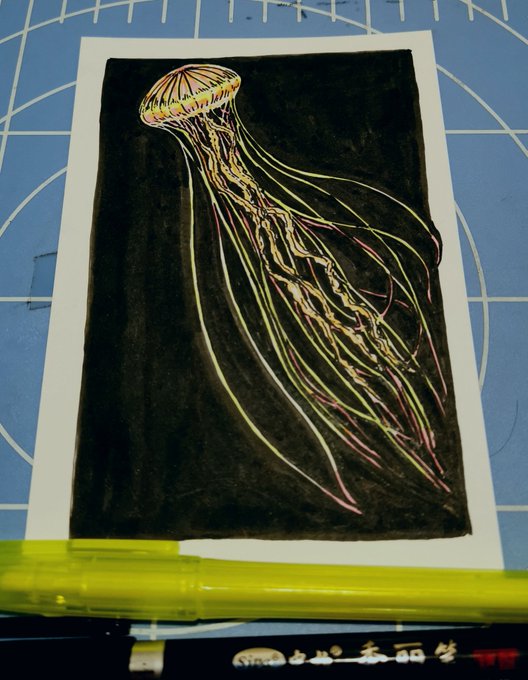Inktober fanmade monster prompt Day 5 - Luminescent #inktober #inktober2020 #inktober2020day5 #jellyfish