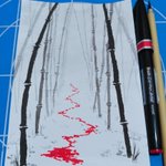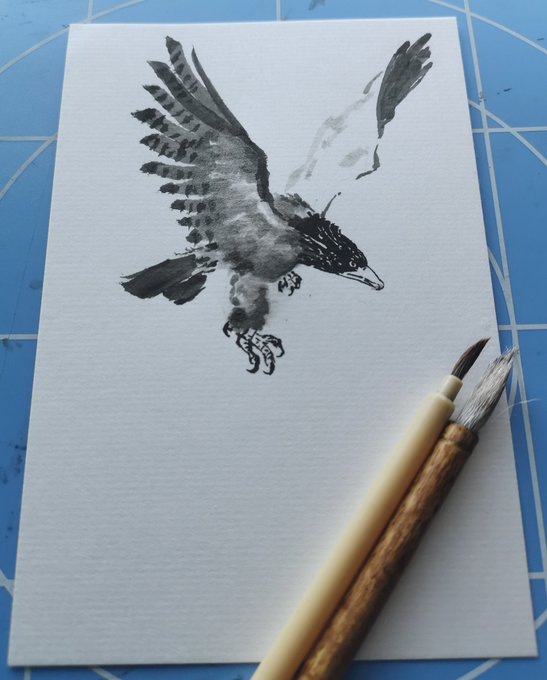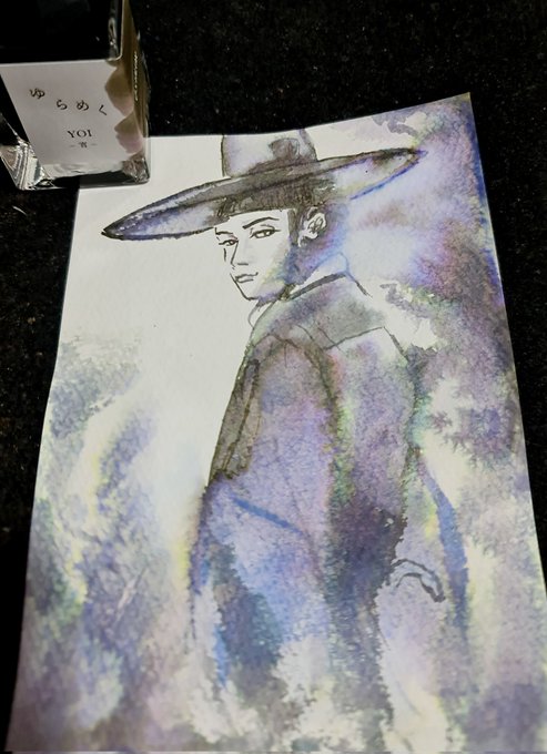 Inks for Inktober? Test Sailor Yurameku Yoi Brush on watercolor postcard #fountainpenink #inktober