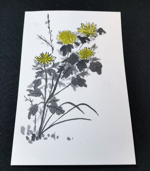 Belated inktober - fanmade monster prompt list Autumn - chrysanthemum Though I think I prefer the ATC better #inktober2020 #Inktober #autumn #chrysanthemum #chinesepainting #xieyi