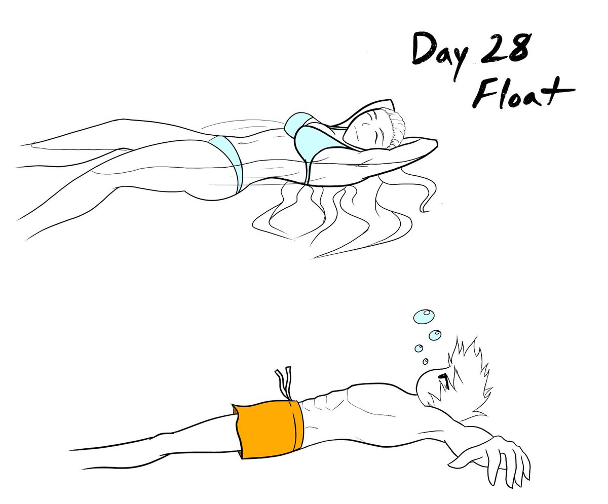 #inktober2020 Day 28 Float, How my summers go, Me, “So how do you float?” Friend, “You just lie back and relax” Me, “Yeeeeaahhh this ain’t working...” #float #sink #badadvice #swimming