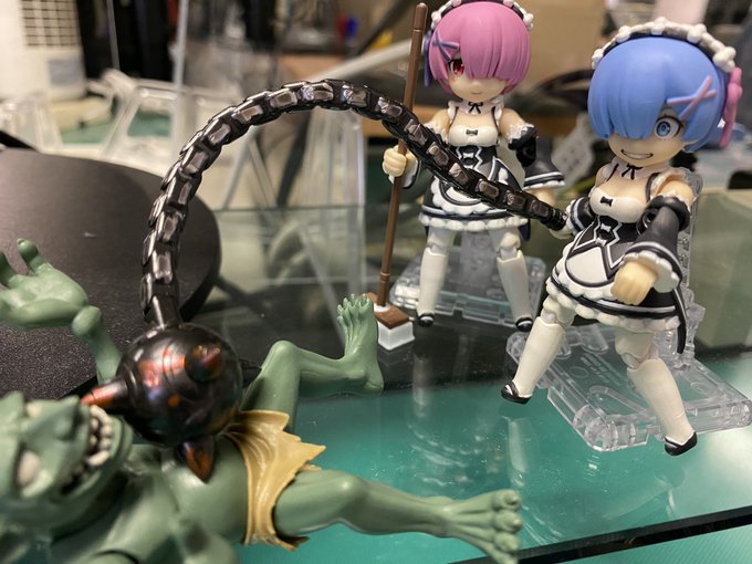 デストップアーミー、リゼロ、レム。 もうちょっとプラモ感あるかと思ったら、ほぼ皆無でした(笑) でも、しっかり動くので楽しい♫ 手垢つきそうだなぁ(汗) #デスクトップアーミー #リゼロ #レム