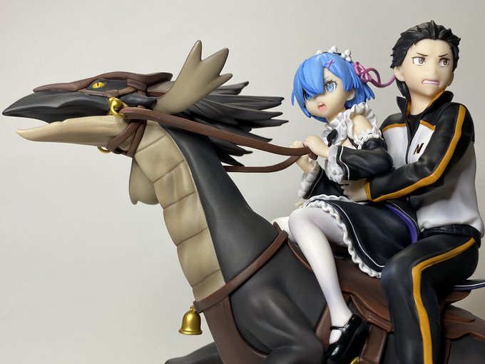 フィギュア棚を整理して、やっと開封♫「レム&スバル 白鯨討伐ver.」レムとスバルのスケールはメッチャ小さいけど、造形細かい!パトラッシュも迫力満点♫ #リゼロ #レム #美しきフィギュア達の宴