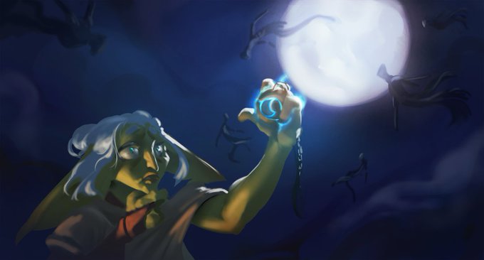 Day 9 and our goblin is getting haunted by the ghosts of her memory, today's word was flashback #magictober #inktober #inktober2021 #inktober2022 #illustration #eclipse #day8