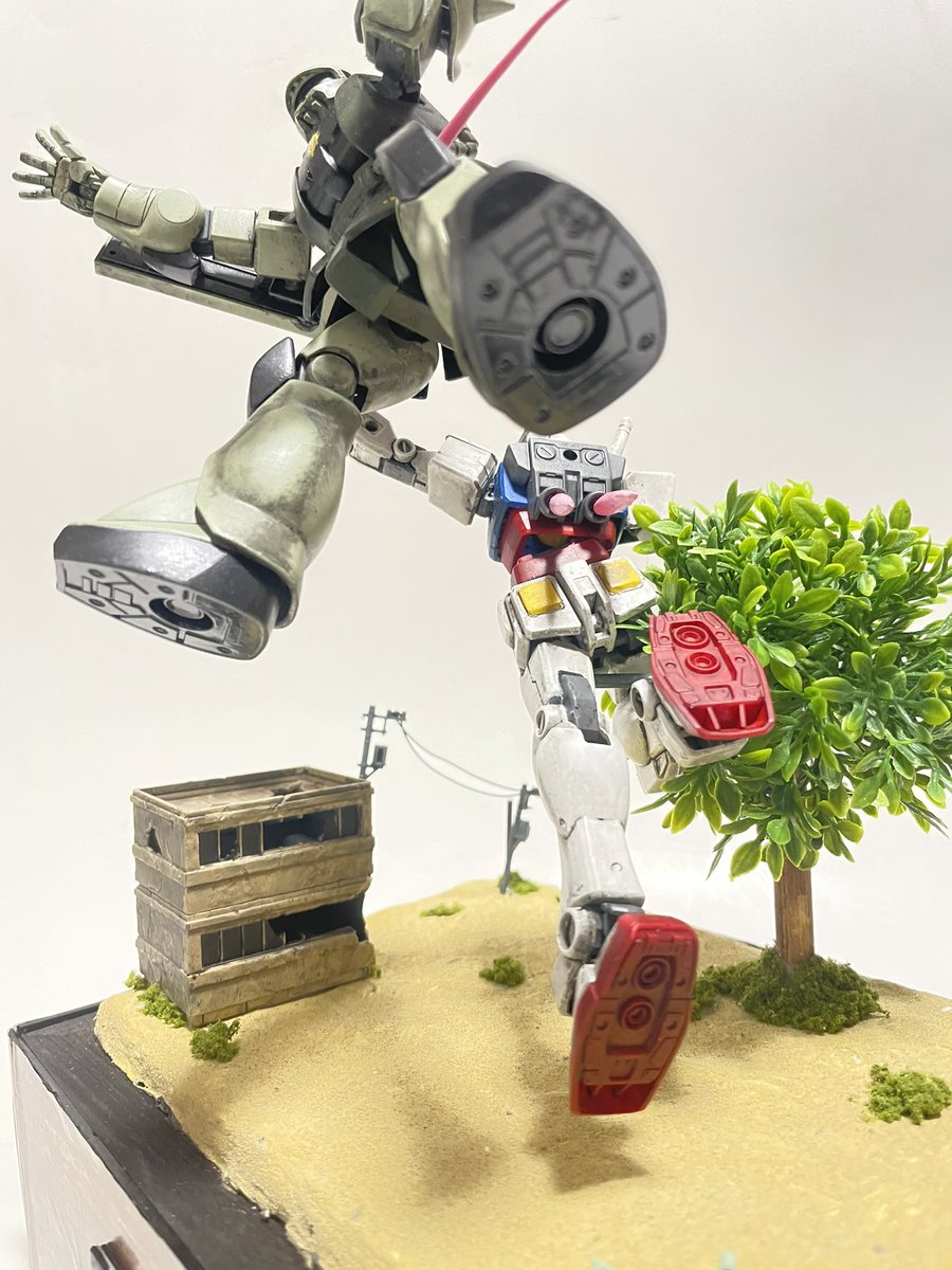 53 413 #ガンダム名シーン #ガンダムvsグフ #ランバ・ラル #アムロ 機動戦士ガンダムの名シーン ガンダムvsグフのジオラマ完成しました。😊 21/04/24 22:49