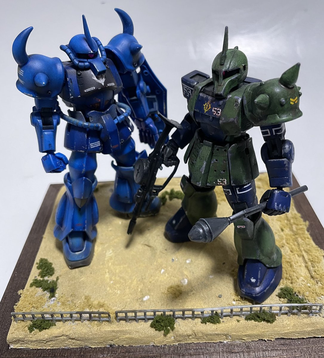 #旧ザク #ガンプラ 仕事が忙しく中々本腰ガンプラ制作出来ませんが生き抜きで制作した旧ザクです。グフはおまけです。
