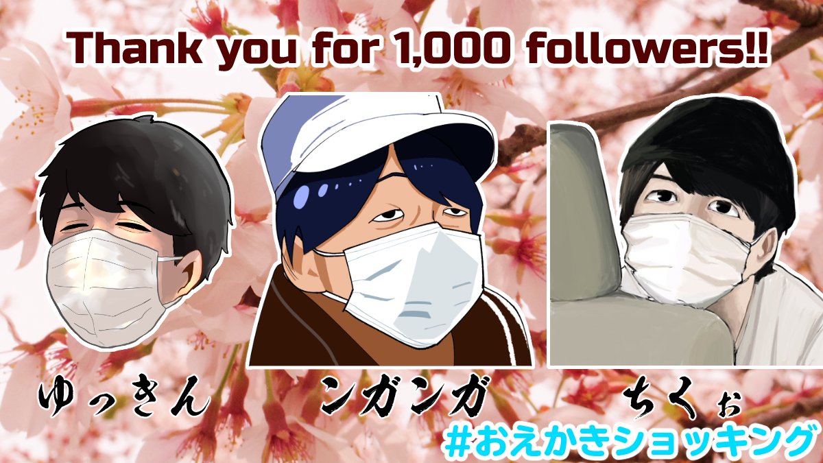 Thank you for 1,000 followers!! 1,000人フォローアリガトウゴザイマス!! ゆっきん=サン、ちくぉ=サン、アリガトウゴザイマシタ!! フンフンッ #おえかきショッキング #い・らくすと