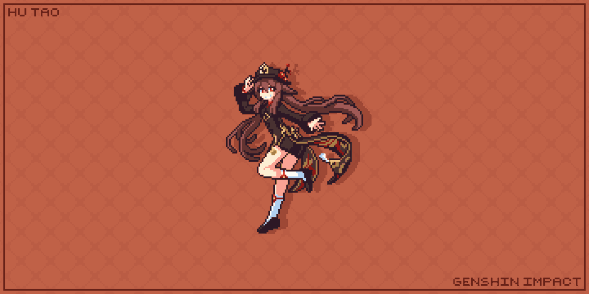 Hu Tao (Genshin Impact) Fragrance in Thaw The 77th Director of the Wangsheng Funeral Parlor. #pixelart #ドット絵 #aseprite #HuTao #胡桃 #genshinimpact #原神 #原神project