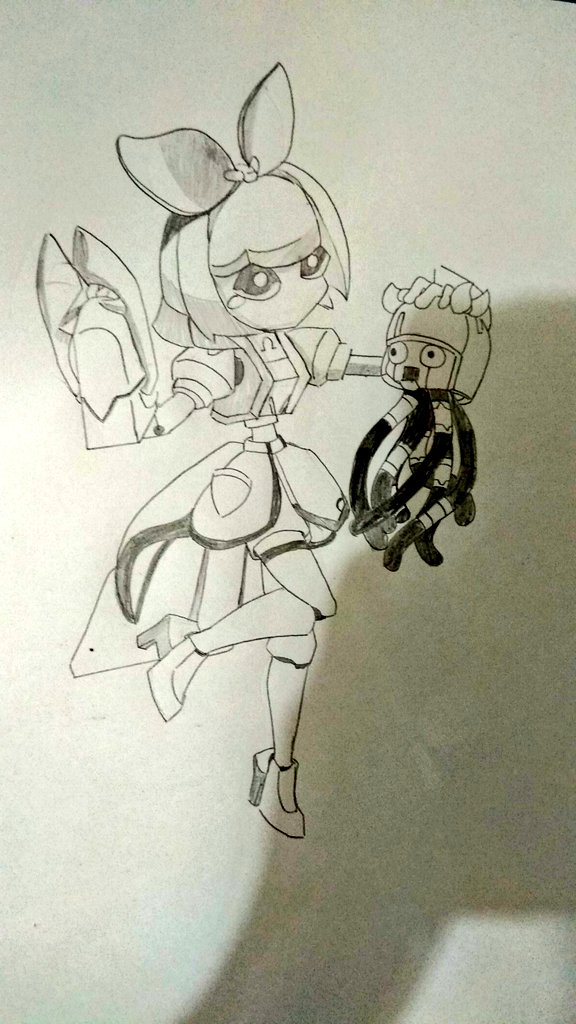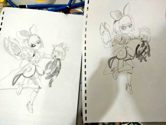 姐妹机器人,有点太难了,手有点累了。🤣我画了两次了。 #メダ模写 #おめシス