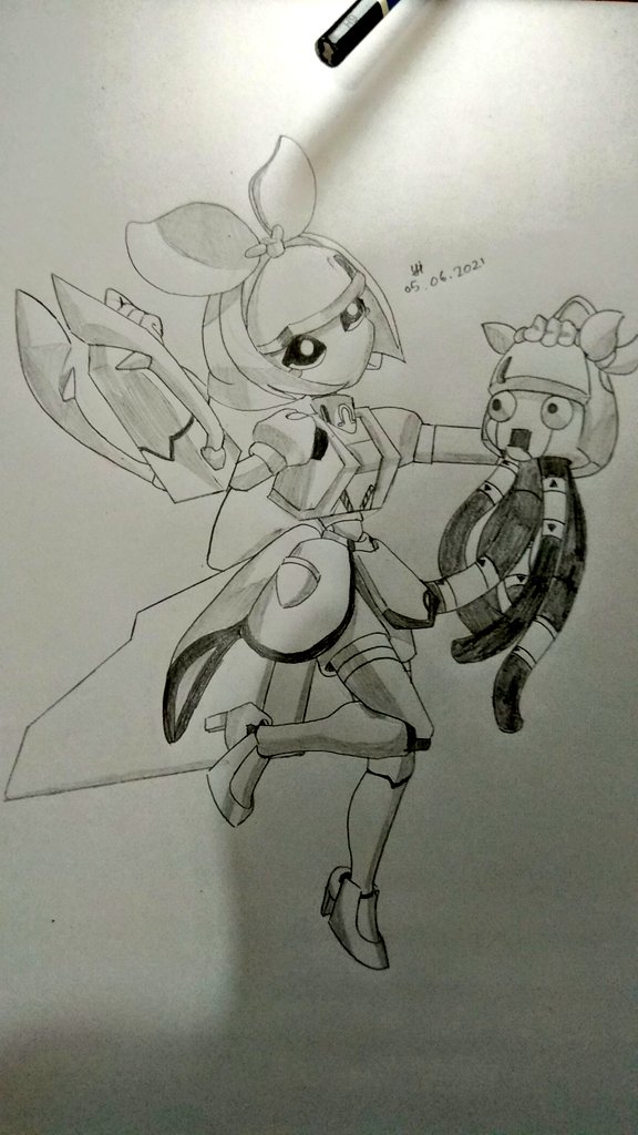 5 13 姐妹机器人,有点太难了,手有点累了。🤣我画了两次了。 #メダ模写 #おめシス 21/06/05 14:29