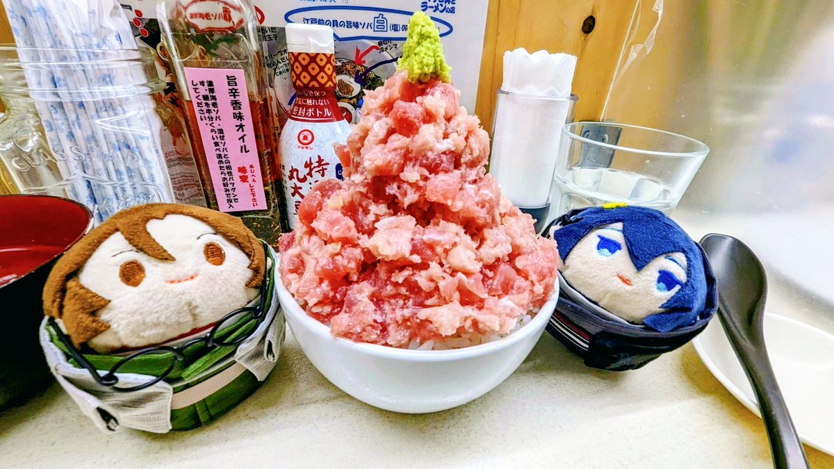 48 194 とうかぶの前にいただいたネギトロ丼。 新橋演舞場から徒歩5分くらい、歌舞伎座の側にあるウミノイロさん。マグロを卸してるだけあって、とても美味しかったです。だしが効いた熱々な汁もつきます。 ネギトロタワーでお腹いっぱいになり元気に観劇できました。 23/07/14 12:13