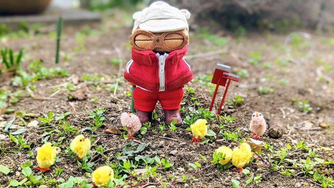 211 601 土偶ちゃん、農業はじめました ひよこの飼育にいそしんでいます 23/02/11 12:23