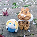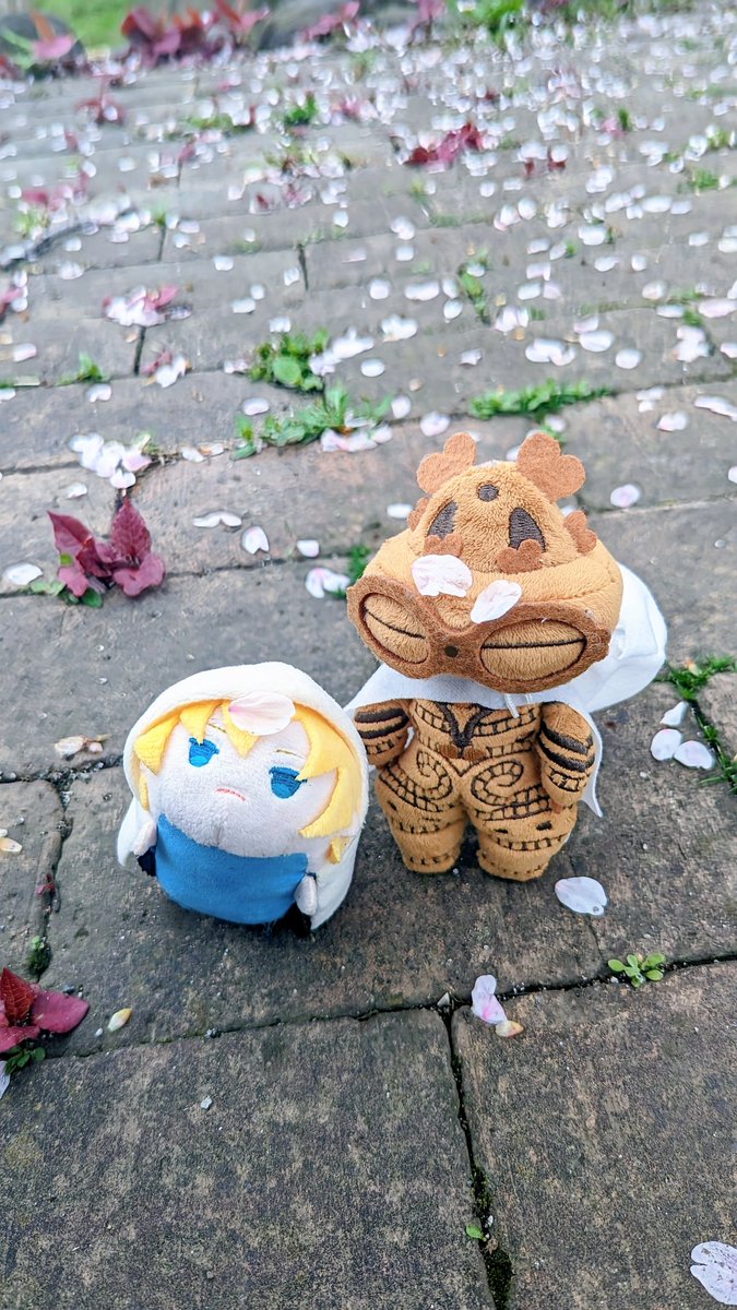20 145 #ぬいもち桜の便り2023 桜舞う小道をお散歩する もちんばと土偶ちゃん 23/03/27 17:32