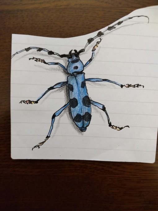 今日の落書き ハンミョウ(色鉛筆) #ハンミョウ #甲虫 #色鉛筆 #色鉛筆画 #落書き #落書き好きな人と繋がりたい #イラスト #イラスト練習中 #natureart #tigerbeetle #coloredpencil