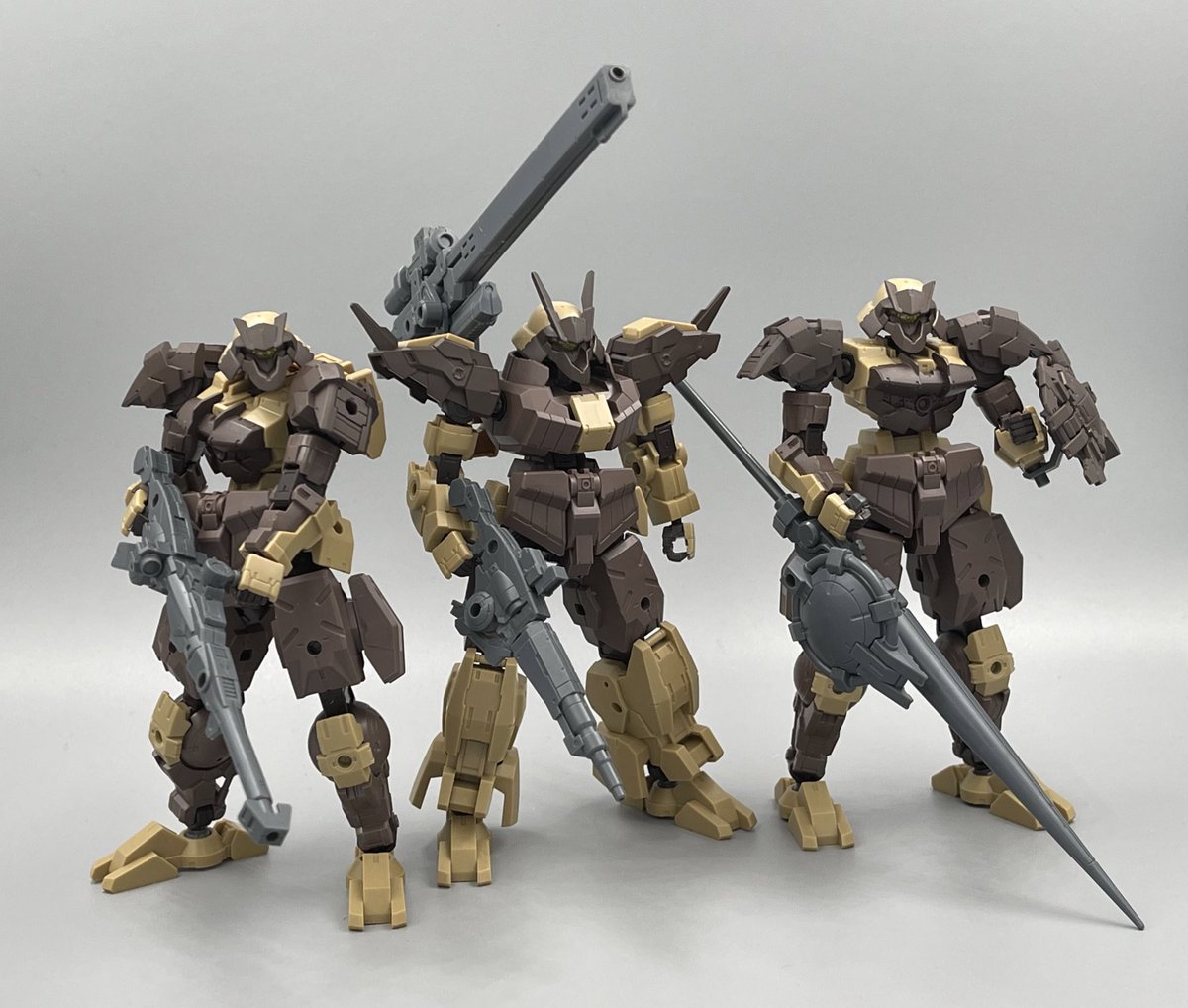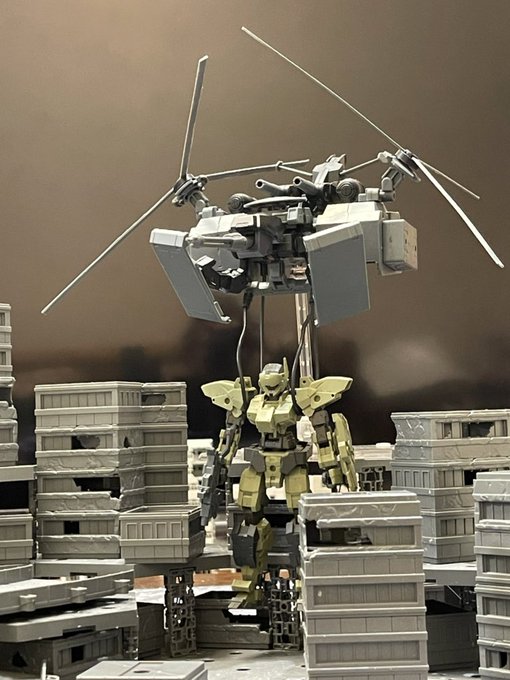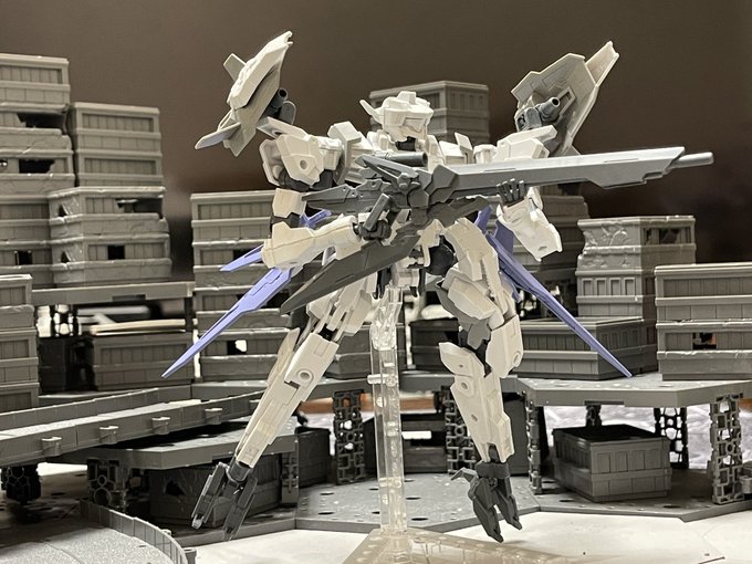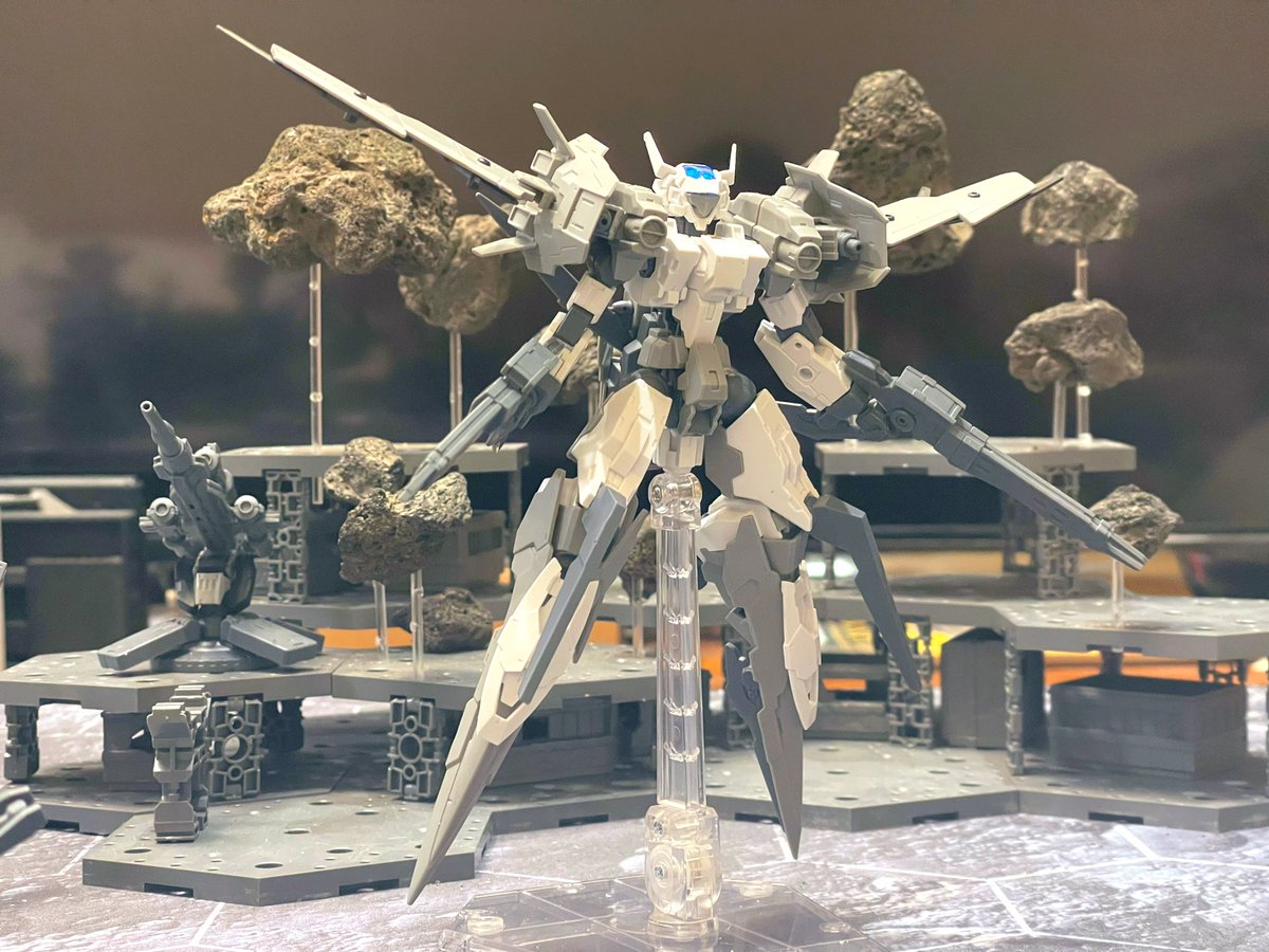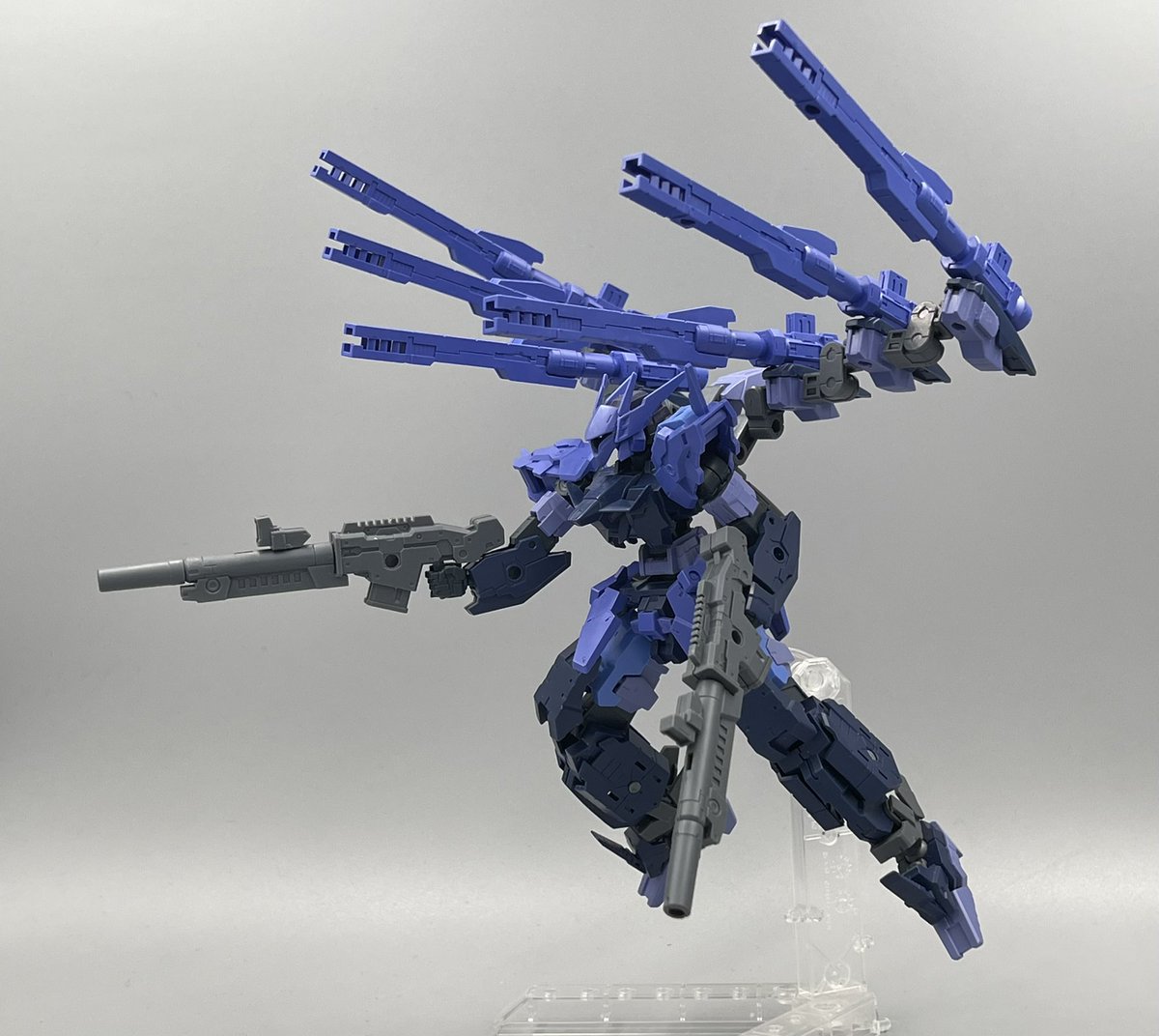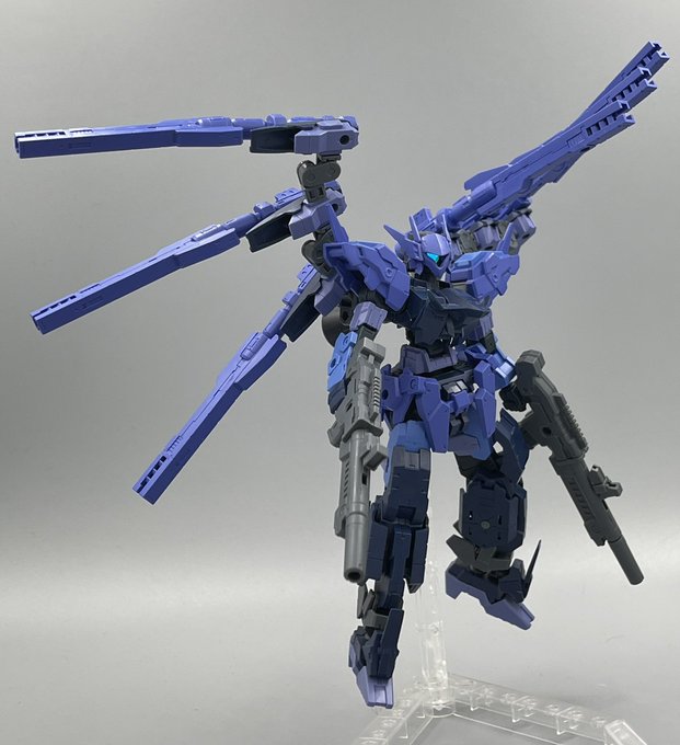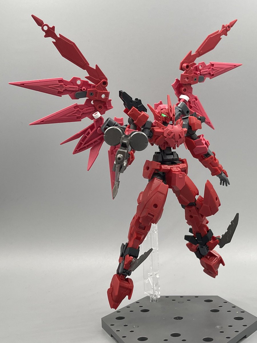 「紅夜」 三勢力の技術を統合した超高機動機です 、 背後にある特殊な実験炉で通常以上の出力を得ています 。 企業が開発した格闘用の一体型ライフルを使っています 、翼には最新開発の浮遊剣兵器が搭載されています。 #30MM古代都市戦 #30MM地球連合軍