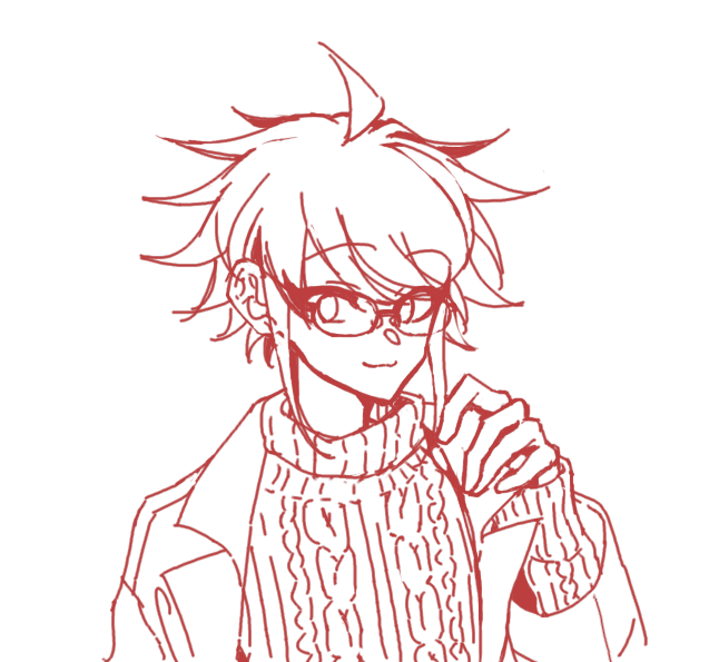 #イラスト #線画 #イラスト好きさんと繋がりたい #お絵描き好きさんと繋がりたい #オリキャラ #男の子 (先日推しのタートルネックセーター+眼鏡+白衣姿に無事死亡したのでこの気持ちをぜひおすそ分けしたく、フル装備をセロに着せた線画)