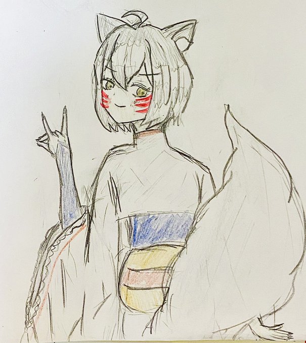1 12 #狐乃お絵描き 遅れましたが1周年おめでとうございます! 見返り美人です。 23/03/07 01:01