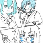 ざっくりユート's紹介 (過去絵ですみません…) 一枚目(左上から時計回りに) A.R.Tユート ユーナ(並行世界ユート) 自暴自棄ユート バグユート ユート 鬱ユート 二枚目 A.R.Tユーナ 三枚目 クラシックモリゴンズ(無声アニメ世界ユート&ユーナ) 四枚目 無敵ユート