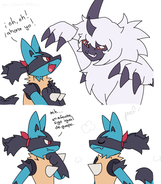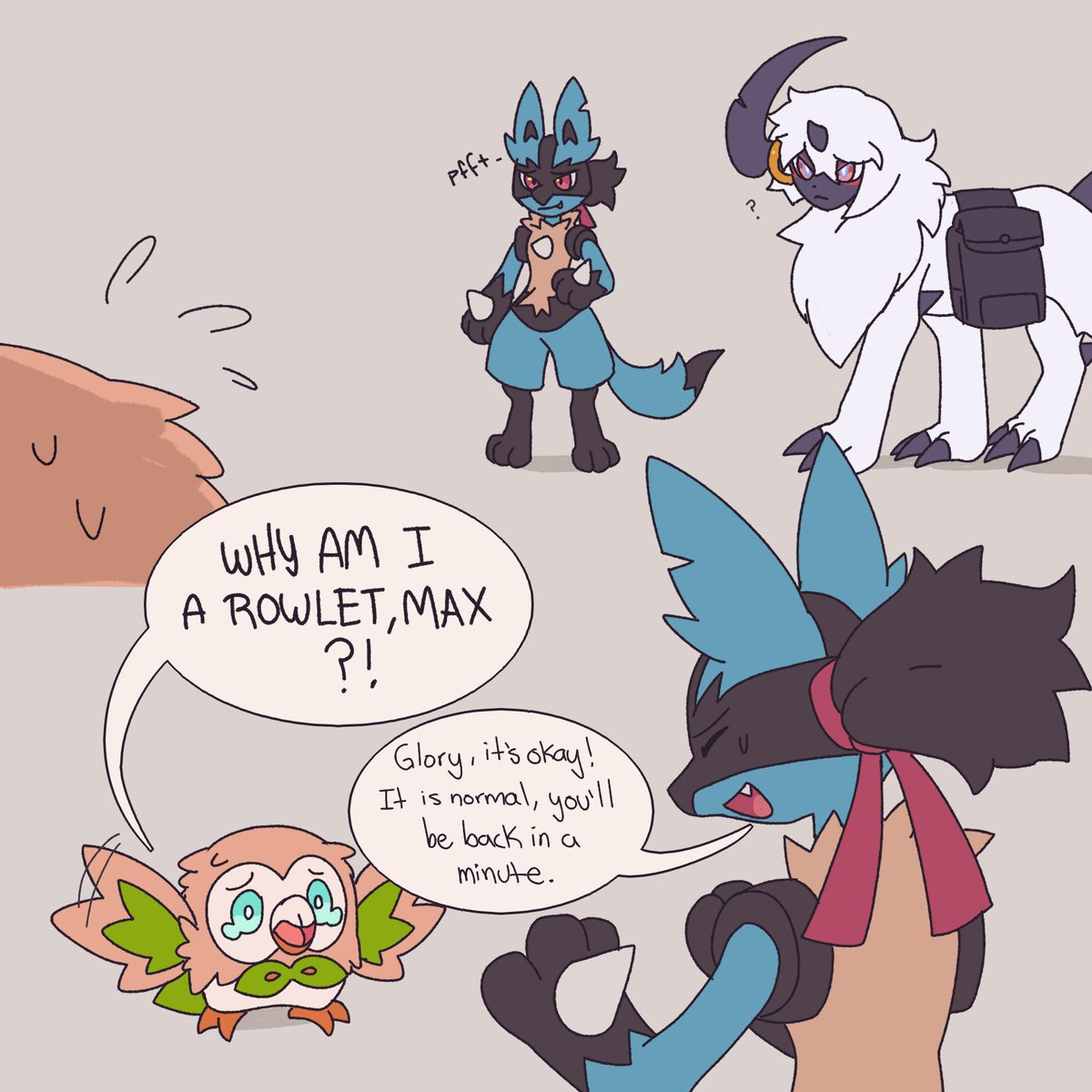 Huesito "Go for it, Max!" "Ha, ha. So funny." "..." "WELL SOMEONE HAS TO GO FOR IT." #lucario #decidueye #pokemon