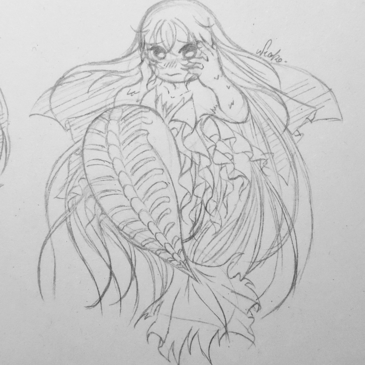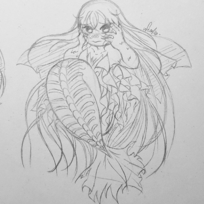 5 9 09. Eleonor 🦋 Have your typical singing mermaid! Not much of inspiration here, I patchworked some ideas for her design! Eleonor Daian © @NiehOhKo #Neoko #MyArt #Drawing #Sketch #OC #MerMay 21/05/20 03:55