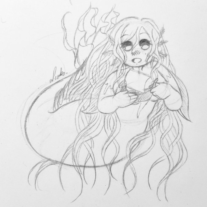 3 10 20. Misery 🦋 It lacks of crazyness around here so let me introduce you Misery! Her design is heavily inspired by electric eel, because she loves to play with electricity! Misery Wellsburth © @NiehOhKo #Neoko #MyArt #Drawing #Sketch #OC #MerMay 21/06/24 19:36