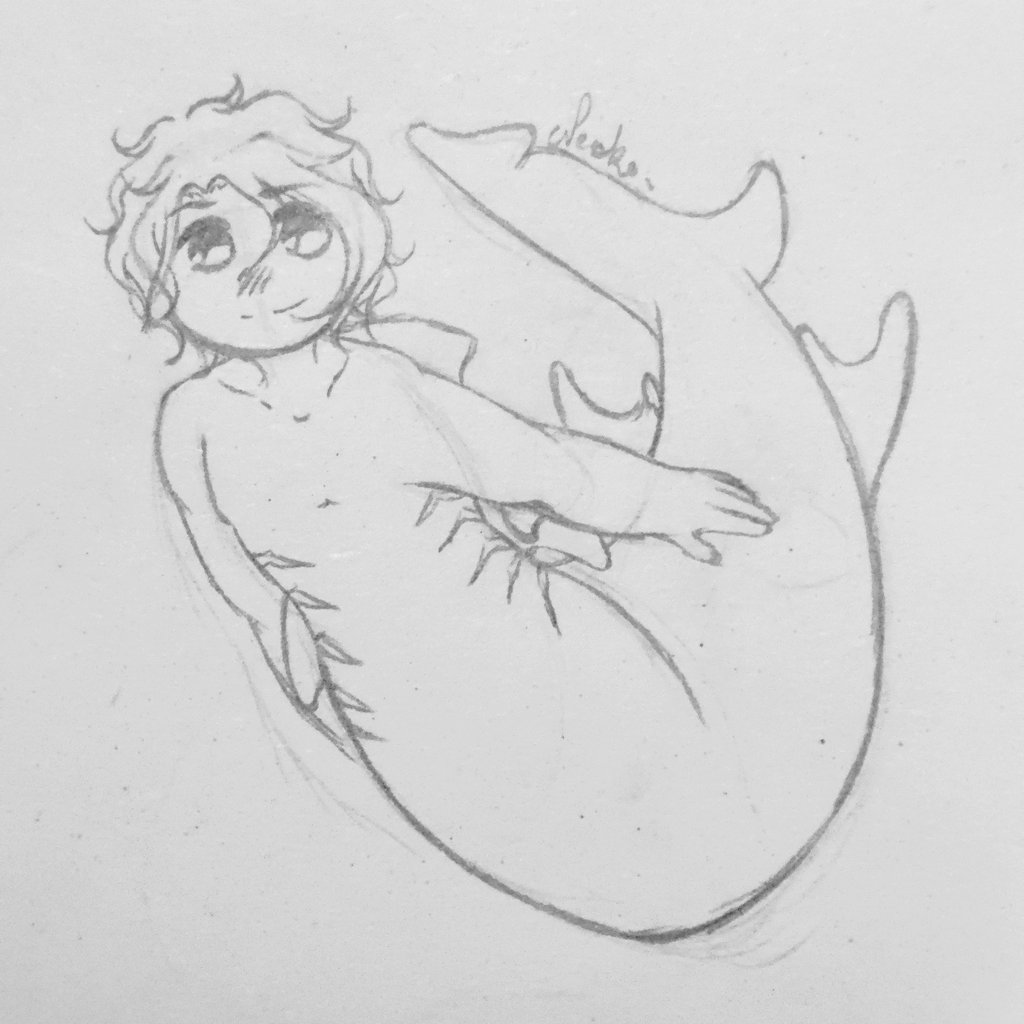 3 8 16. Ivan 🦋 My smol prince! His design is inspired by the Japanese angelshark, a cute shark with sharp teeth! Ivan Rosenthal von Friedholf © @NiehOhKo #Neoko #MyArt #Drawing #Sketch #OC #MerMay 21/06/16 01:24
