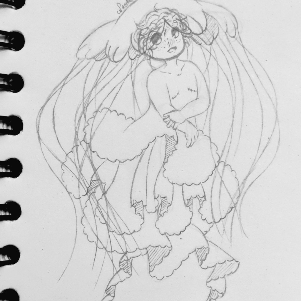 5 9 08. Scythe 🦋 Inspired by the aurelia aurita and the pelagia noctiluca jellyfish! The cutest queen among others 💜 Scythe Rosenthal von Friedholf © @NiehOhKo #Neoko #MyArt #Drawing #Sketch #OC #MerMay 21/05/19 20:40