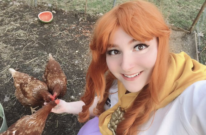Malon treating her lovely Cuccos in the confort of her backyard ;-) #CosSTAYatHome #takucos #wcscanada #thelegendofzelda #cosplay #malon #chickens