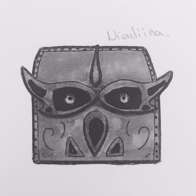 Jour 5 Une stèle ancienne dédiée à Poka. Peu l’on vu mais on dit que c’est la dernière chose que l’on voit après la mort. On dit aussi que son œil orangé lui permet de déceler en chacun le bon du mauvais… #inktober2021day5 #inktober2021 #creature #drawing