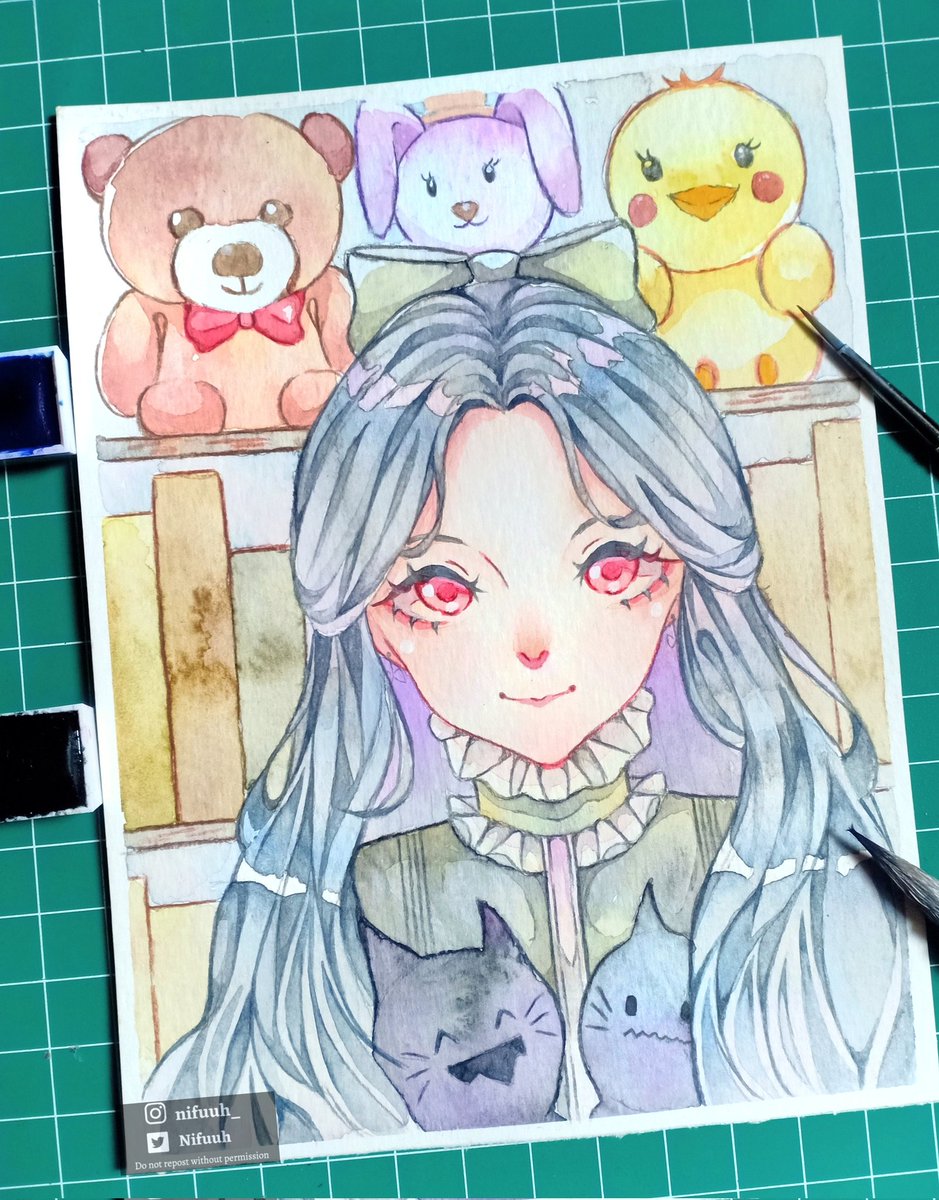 Niatnya mau diwarnai tema dark gitu tapi jadinya malah colorful huhuhu 😭 #artidn #ArtistOnTwitter #Watercolor
