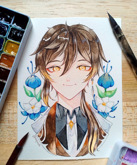 Happy New Year All & Happy Late Birthday Zhongli🎉🎉 #zhongli #GenshinImpact #fanart #watercolor